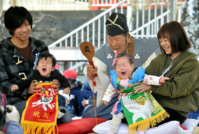 Przypuszczam, że w naszej tradycji celebrowalibyśmy to dziecko, które ani krzykami, ani wstrząsami, ani tym bardziej demoniczną maską nie da się przestraszyć. Japońscy rodzice cieszą się, gdy ich brzdąc zapłacze jako pierwszy. Konkurs, którego tradycja sięga 400 lat wstecz, zainspirowany został japońskim przysłowiem „naku ko wa sodatsu” („płaczące dzieci rosną szybciej”), a jego intencją jest -jak wierzą rodzice- wspieranie zdrowego rozwoju dzieci, ale także odpędzenie z ich otoczenia złych duchów.