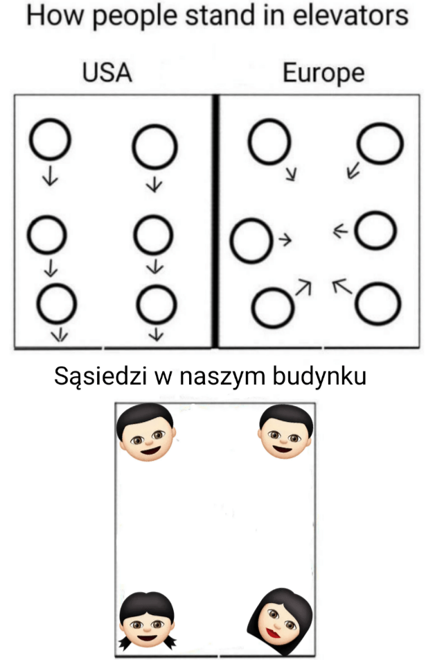 Kiedy mieszkałam w bloku z windą, panowała niepisana zasada, że pierwsi wchodzą ci z wyższych pięter. Dzięki temu nikt się nie przeciskał. Nawet nieznajomych pytaliśmy na które jadą, a ja w razie potrzeby przepraszałam, że wsiadam pierwsza, i tłumaczyłam, że jadę na jedno z najwyższych pięter.