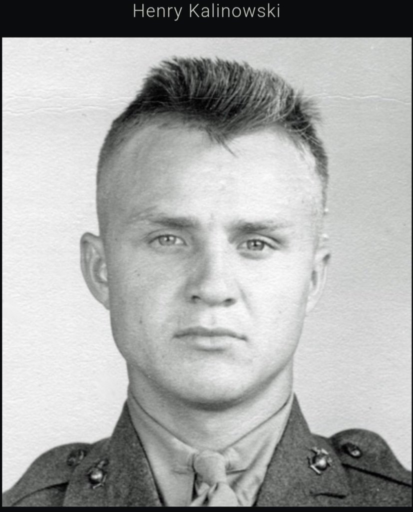 Starszy szeregowy (P1c) Henry Kalinowski. Syn polskich imigrantów, ur. 13 maja 1920 r. w Ohio. Ojciec: Adam Kalinowski.