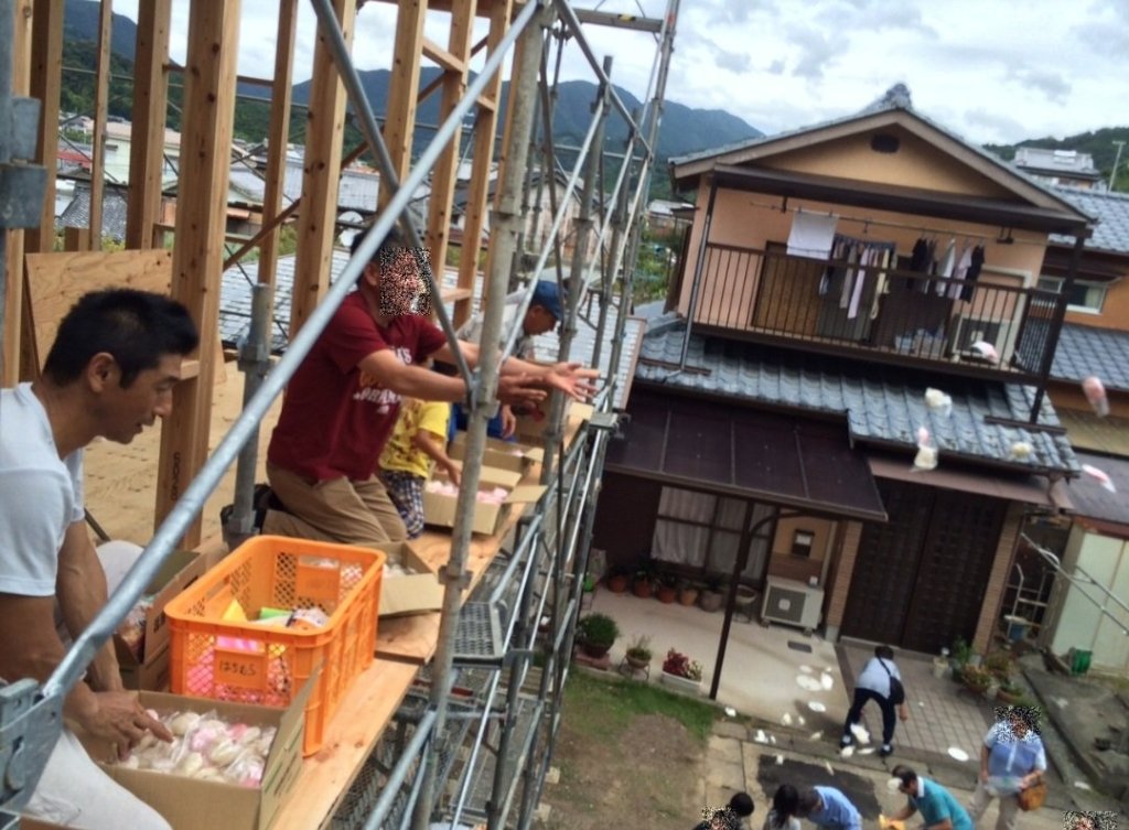 W Japonii, zakończenie pierwszego etapu budowy świętuje się ceremonią shintistyczną (jotoshiki) oraz poczęstunkiem dla sąsiadów w postaci ryżowych ciasteczek mochi (białych lub czerwonych), czasami również słodyczy, lub, zwłaszcza dla dzieci, monet 5 i 10 yenowych zawiniętych w kawałek papieru zrzucanych z dachu budynku. Tradycyjnie jedynie mężczyźni mogli zrzucać prezenty, dziś zdarza się, że również kobiety uczestniczą w tym rytuale.