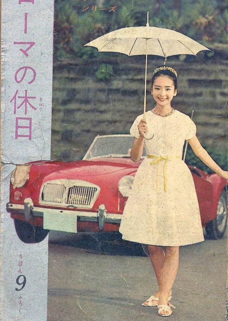 Film „Rzymskie wakacje” z 1953 roku to romantyczna komedia, w której grana przez Audrey Hepburn księżniczka Anna sfrustrowana ograniczeniami narzuconymi jej przez życie wymyka się z ambasady swojego kraju w Rzymie, po czym zostaje odnaleziona przez reportera Joe Bradleya (w tej roli Gregory Peck). Film nie okazał się hitem w Ameryce, ale Japonia straciła głowę dla 24-letniej brytyjskiej aktorki, a moda na „moga” powróciła ze zdwojoną siłą.