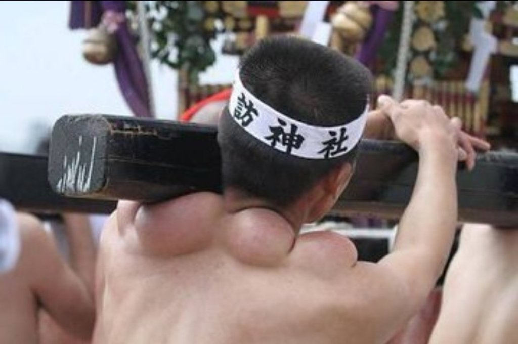Obowiązkowym elementem tradycyjnych japońskich festiwali są przenośne kapliczki mikoshi. Wyznawcy shinto wierzą, że służą one jako środek transportu dla bóstw kami podczas przemieszczenia się pomiędzy świątyniami. Waga samej kapliczki dochodzi często do 500 kg, a wraz z drążkami może przekroczyć 1 tonę. Noszone na barkach przez uczestników festiwali są często przyczyną potężnych nagniotków spowodowanych długim uciskiem. Dźwiganie na ramieniu przez wiele godzin ciężkiej kapliczki bardzo je obciąża, powoduje stany zapalne i w konsekwencji powstanie potężnych guzów. Mikoshi dako, gdyż tak zwą je Japończycy, wyglądają niepięknie, ale dla niosących mikoshi (lub z szacunkiem o-mikoshi) wyznawców shinto są odznakami honoru.