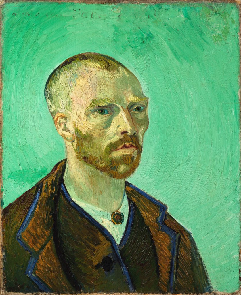 Prawdopodobnie najdziwniejszy ze wszystkich autoportretów Vincenta van Gogha. Ze skośnymi oczami i wystającymi kośćmi policzkowymi zapragnął wyglądać jak japoński mnich. Wysłał go z Arles na południu Francji niecałe dwa lata przed tragiczną śmiercią w 1890 roku w prezencie Paulowi Gauguinowi, którego od dłuższego czasu usilnie namawiał do zamieszkania z nim w Prowansji. W liście do francuskiego malarza napisał: „Celowałem w postać prostego bonze (mnicha) czczącego wiecznego Buddę”. Pomysł Vincent zaczerpnął z popularnej w owym czasie we Francji książki autorstwa Pierre Loti „Pani Chryzantem”. Inspirowana przeżyciami autora powieść opowiada o małżeństwie młodego oficera francuskiej marynarki wojennej z Japonką w Nagasaki.