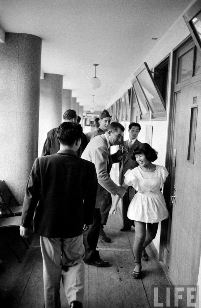 Flirtowanie z pracownicą w sento. Łaźnie publiczne funkcjonują w Japonii już od ok. 1000 lat, ale dopiero po 2 wojnie światowej pojawiły się sento dla specjalnej klienteli – amerykańskich oficerów.