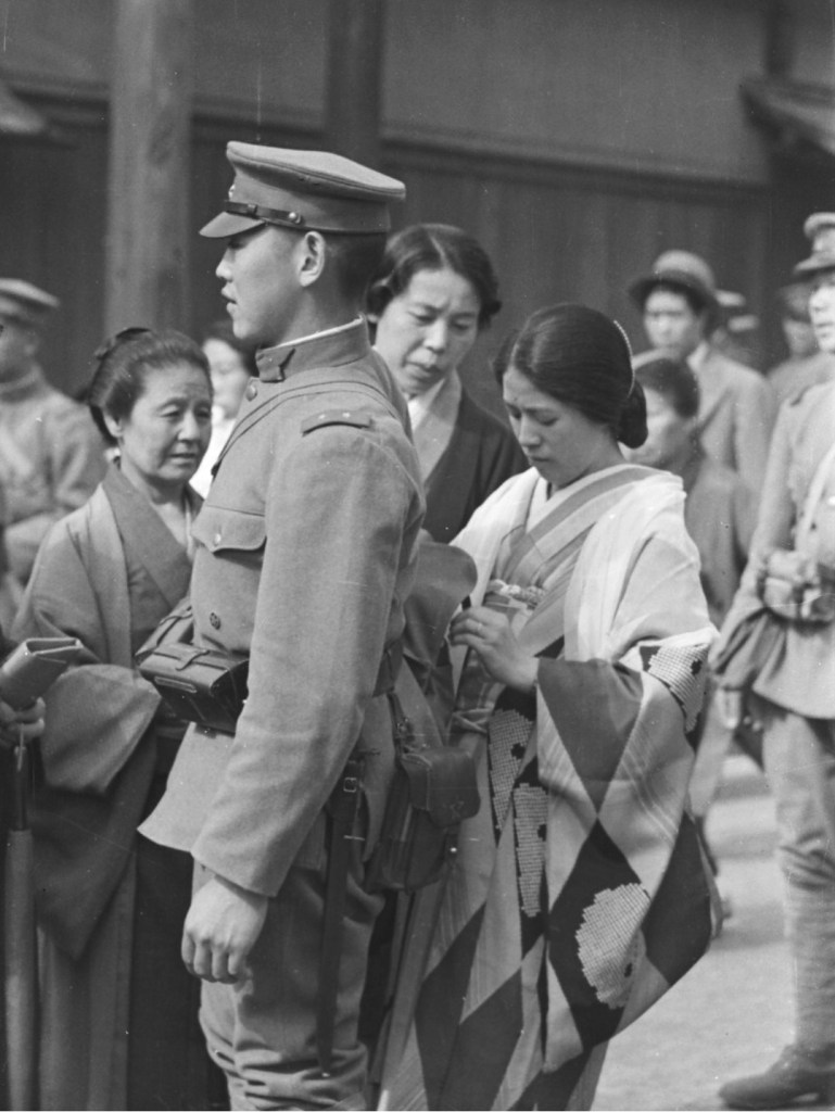 W latach 30. XX wieku, w epoce Shōwa, militaryzm nasilił się. Matki uczestniczyły w rytuałach patriotycznych, takich jak pożegnania rekrutów (send-off ceremonies), gdzie dzieci śpiewały pieśni wojenne (gunka) i machały flagami. Szyły też senninbari – pasy z tysiącem szwów, symbolizujące ochronę i dumę, co wzmacniało u synów poczucie obowiązku wobec narodu. Chłopcy brali udział w marszach, wizytach w obozach wojskowych i szkoleniach z bronią (np. bambusowymi lancami), często z udziałem rodziców, co utrwalało militaryzację już od najmłodszych lat.