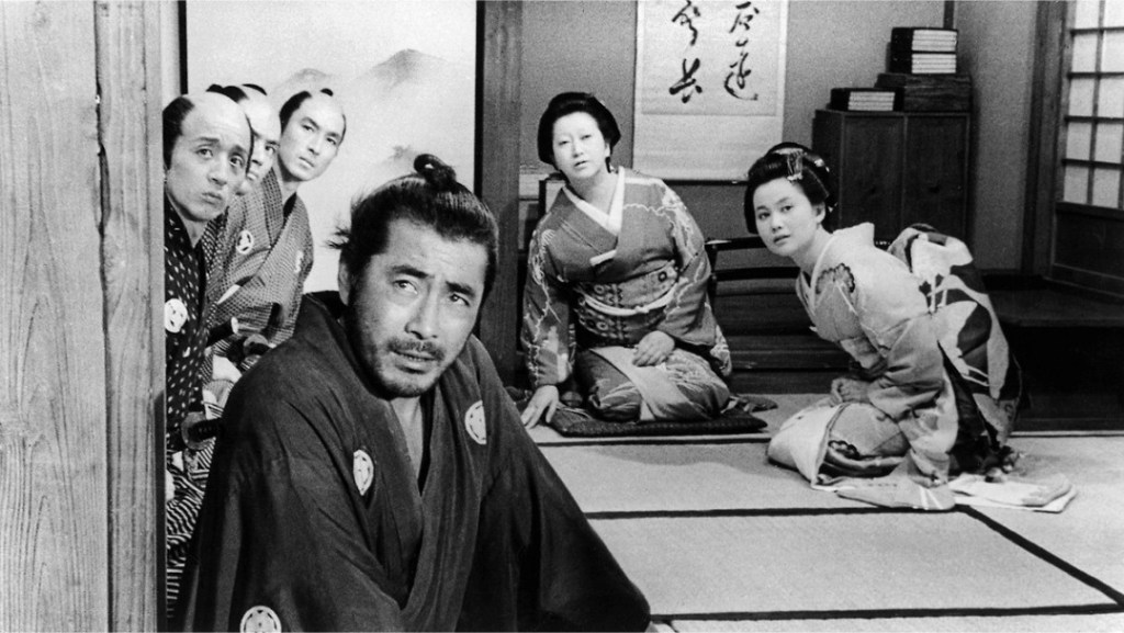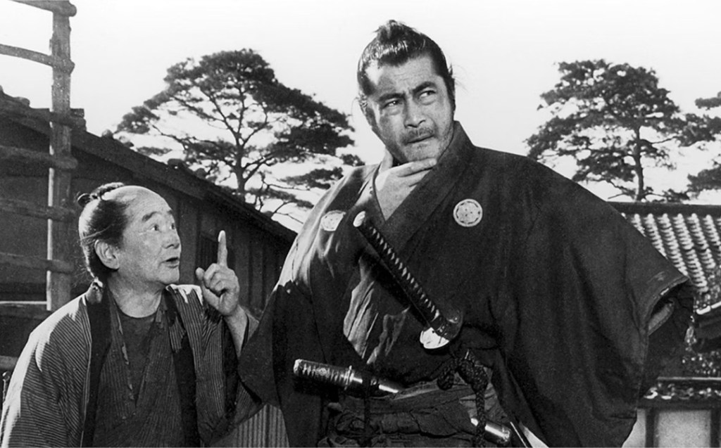 W Straży przybocznej Mifune gra Sanjuro Kuwabatake – samotnego ronina, czyli samuraja bez pana. Sanjuro jest sprytny, cyniczny, ale ma w sobie głębokie poczucie sprawiedliwości. Jego broda jest trochę bardziej zadbana niż u Kikuchiyo, co pokazuje, że panuje nad sobą, ale wciąż jest znakiem jego wolności. Jako ronin nie musi nikomu służyć – ani szogunowi, ani społeczeństwu. Jego zarost mówi: „Żyję po swojemu”.