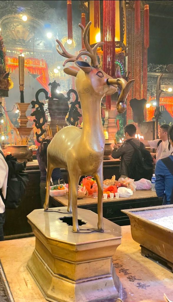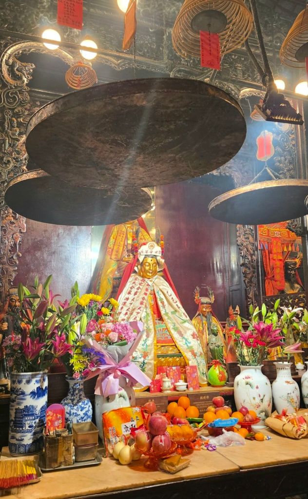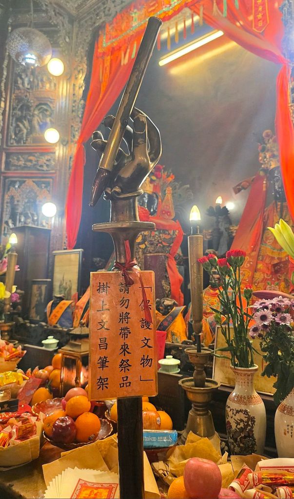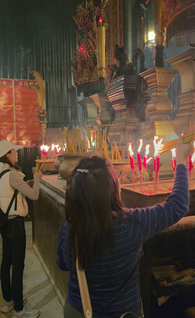 Z zewnątrz Man Mo wygląda niemal skromnie: zielone dachówki w stylu dynastii Qing, kolumny i kamienny lew chiński. Ale wystarczy przekroczyć próg i wchodzimy w inny wymiar. Po wejściu do środka w jednej chwili zalewa nas tysiące bodźców. Wiszące spiralne kadzidła (te ogromne koła, niektóre wielkości koła od roweru) zwisają z sufitu jak chmury, powoli się paląc i wypełniając przestrzeń gęstym, aromatycznym dymem.