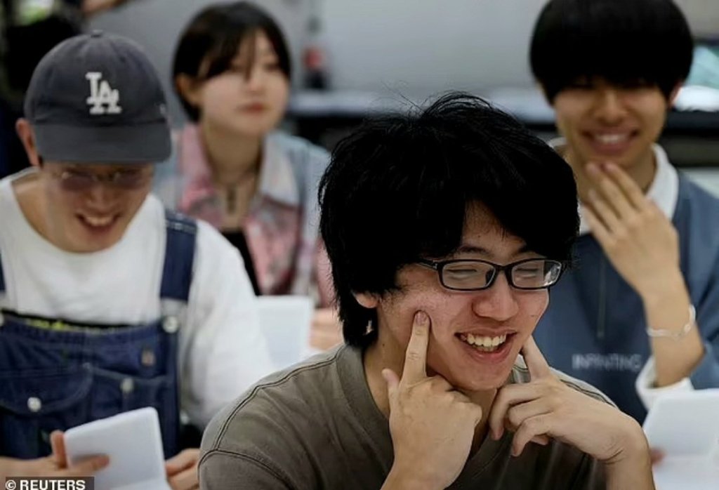 Jedną z przyczyn popularności Japonii w świecie jest to, że w kraju tym funkcjonują niezwykłe placówki handlowe i instytucje, które trudno spotkać w innych częściach naszego globu. Do czego przykładowo mają służyć Japończykom szkoły uśmiechu? Ten przyjazny zazwyczaj wyraz twarzy, choć często w pewnym stopniu odmiennie używany w różnych kulturach, jest częścią naszej ludzkiej natury i raczej nie przyszłoby nam do głowy uczyć się wyrażania uśmiechu na specjalnie w tym celu organizowanych zajęciach. Ale nie w Japonii. Prof. Hiroshi Haroshima, który od wielu lat bada twarze Japończyków oraz ewolucję ekspresji emocji na przestrzeni dziejów uważa, że wielu z nich w dalszym ciągu nie potrafi w pełni wykorzystać możliwości, jakie mięśnie ludzkiej twarzy dają nam w komunikowaniu emocji. Przez stulecia w Japonii czymś bardzo niestosownym było okazywanie emocji, a ideałem była twarz przypominająca maskę aktora teatru Nō (V), którego przedstawienia są dla obcokrajowców, właśnie z powodu braku ekspresji emocji, trudne do zrozumienia. Japończycy, którzy nauczyli się wyrażać emocje bardziej subtelnymi ruchami ciała, potrafią się śmiać, ale uśmiech niezwiązany z rozbawieniem wielu z nich wciąż przychodzi z trudnością.