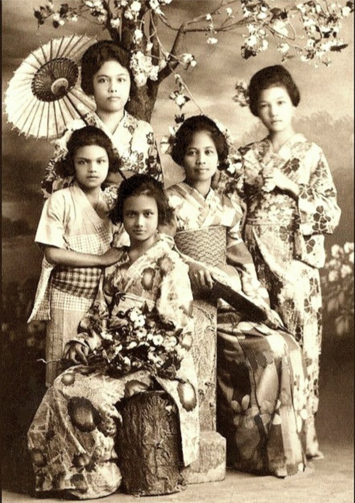 Pojawienie się Hiszpanów w drugiej połowie XVI wieku i ich bardziej konserwatywny model społeczny miał spory wpływ na życie tubylców, zwłaszcza w sferze publicznej, co znów nie pozostało bez wpływu na kształtujące się nowe trendy modowe. Odzież stawała się dłuższa i bardziej misterna. Czasami pojawiały się również elementy japońskie, a w latach 20. ubiegłego wieku bogatsze mieszkanki Manili, Quezon City i Davao nosiły nawet kimona. Przed drugą wojną światową na Filipinach mieszkało kilkadziesiąt tysięcy Japończyków, w większości mężczyzn, a część z nich brała sobie za żony Filipinki. Zainteresowanie modą i kulturą japońską pojawiło się na Filipinach jednak nie pod wpływem diaspory japońskiej, a filipińskiej sopranistki Jovity Fuentes, która w roku 1917 wyjechała do Włoch i zagrała rolę gejszy Cio-Cio San w operze Giacoma Pucciniego Madame Butterfly w Teatrze Miejskim w Piacenza. Odniosła spory sukces i później występowała również m.in.. w Cyganerii Pucciniego oraz Salome Richarda Straussa na deskach teatrów w Europie Zachodniej i Stanach Zjednoczonych. 18 listopada 1927 roku pojawiła się po raz pierwszy w Polsce. Afisz Teatru Miejskiego w Bydgoszczy informował o występie… słynnej japońskiej śpiewaczki.