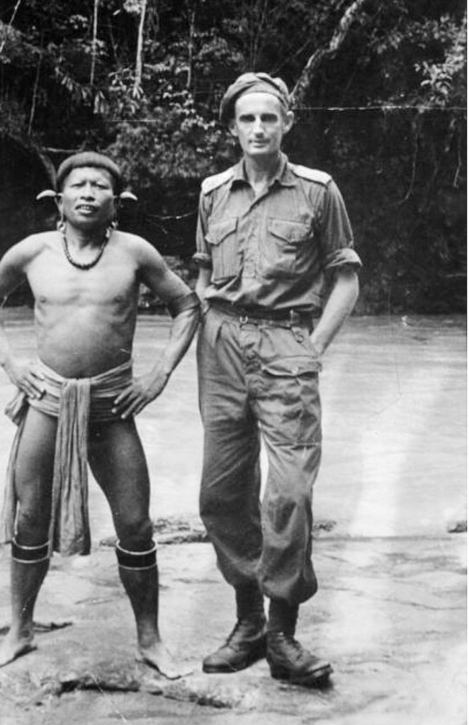 Ca. 1945. Australijski żołnierz z wojownikiem z plemienia Dajaków