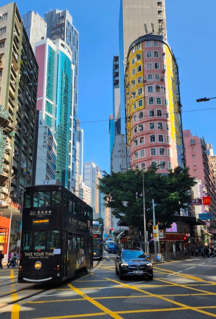 Tramwaje Ding-Ding to jedno z moich absolutnie ulubionych doświadczeń w Hongkongu. Górny pokład daje głęboki relaks i poczucie beztroski, a jednocześnie wyjątkową perspektywę na żywą, nadbrzeżną część wyspy. To nie jest zwykła przejażdżka tramwajem – to medytacja w ruchu, kontemplacja w samym centrum miejskiego zgiełku.
