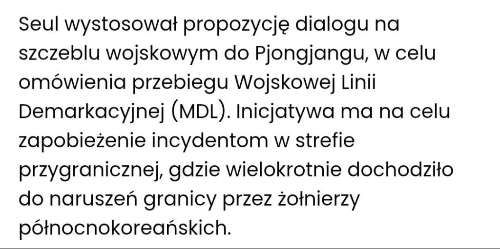 17 listopada 2025 roku Seul wystąpił z oficjalną propozycją rozmów wojskowych z Pjongjangiem. Temat: „wyjaśnienie przebiegu Wojskowej Linii Demarkacyjnej”, bo – jak głosi komunikat – stare, zniszczone wskaźniki graniczne z 1953 roku są nieczytelne i północnokoreańscy żołnierze „przypadkiem” przekraczają linię. Tę samą wersję wydarzeń wiernie powtórzył wczoraj polski Business Insider.