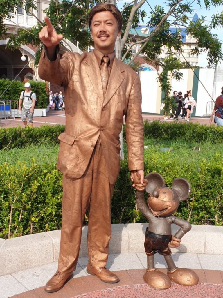 Tokyo Disneyland. Pan z wąsem i fryzurą a’la Walt Disney poruszający się spacerowym krokiem z myszką Miki pod pachą w kierunku kas parku rozrywki ustawił się do fotografii w sekundę, niczym zawodowy model. (fot. JW)
