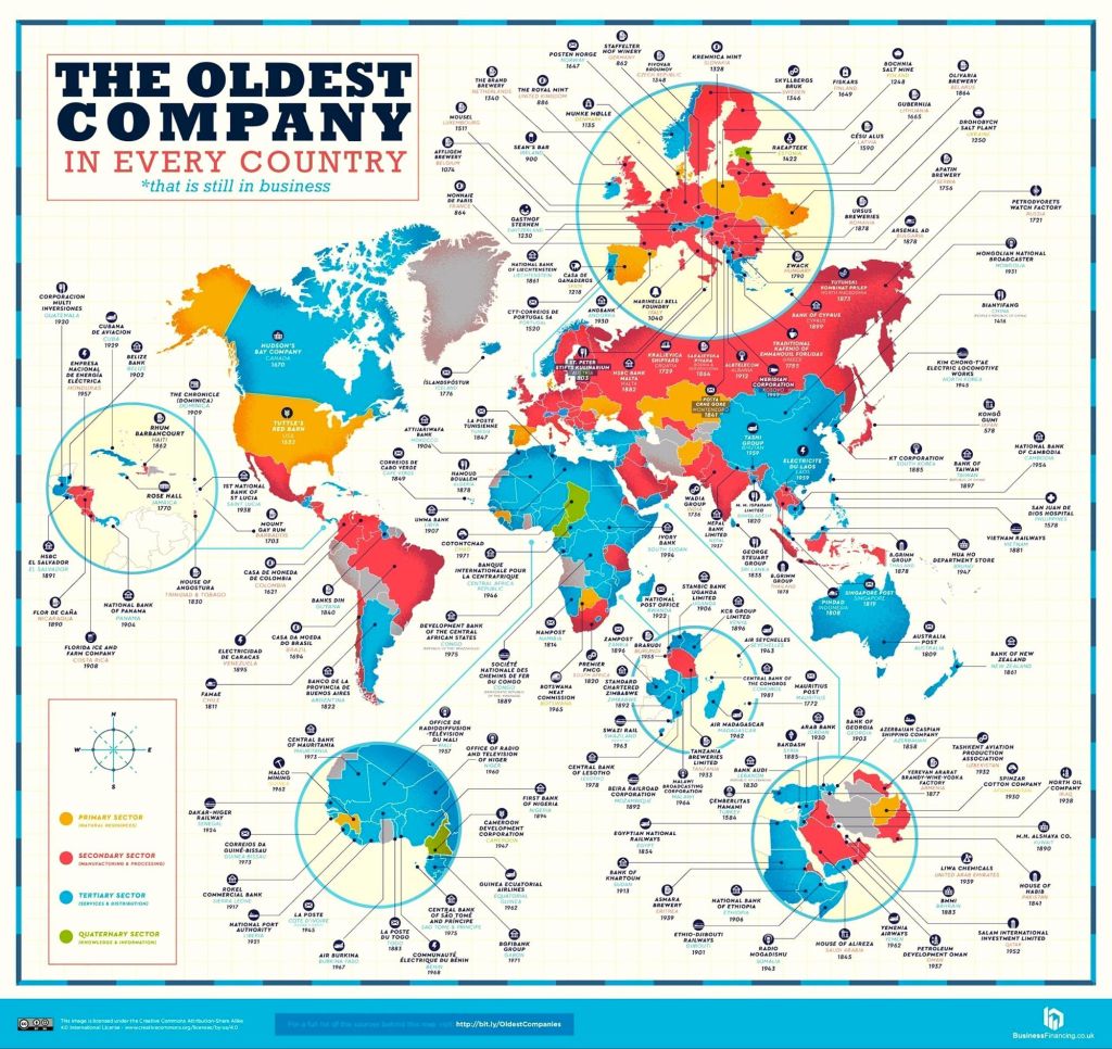 Najstarsze firmy w każdym kraju (Visual Capitalist)