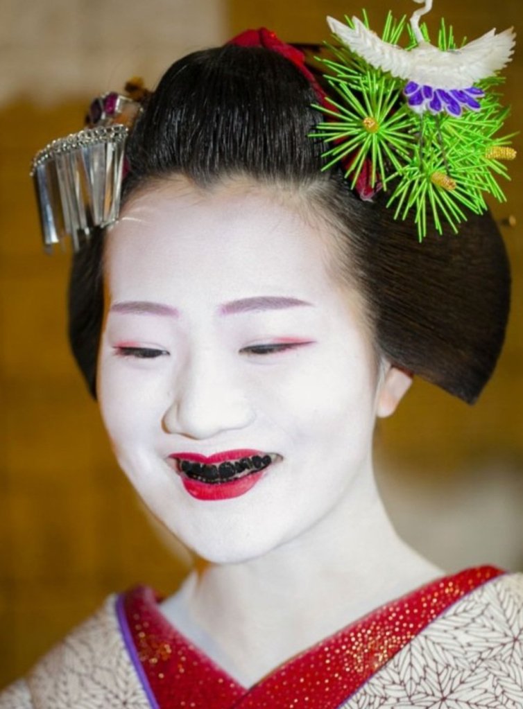 Do czernienia zębów kobiety używały m.in. barwników roślinnych, sake z dodatkiem octu i żelaza. Do namoczonego w sake, czasami herbacie, kawałka żelaza dodawano barwnik, a następnie w ten sposób uzyskany czarny roztwór miękkim pędzelkiem nanoszono ostrożnie na zęby. Zapach, ale zwłaszcza smak barwnika były nieprzyjemne, dodawano więc do niego różne przyprawy celem jego poprawy. Aby zachować połysk, zęby musiały być czernione kilka razy w tygodniu. Barwiło się zresztą nie tylko naturalne zęby, ale również protezy, zarówno te drewniane, jak i porcelanowe.