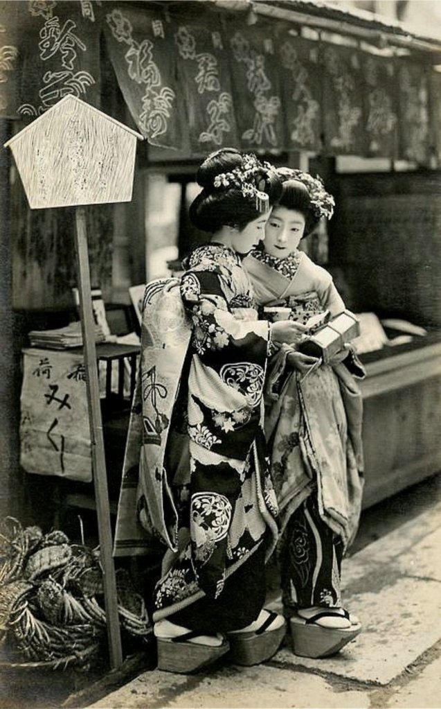 1910r. Krótkie noren powiewają nad głowami maiko.