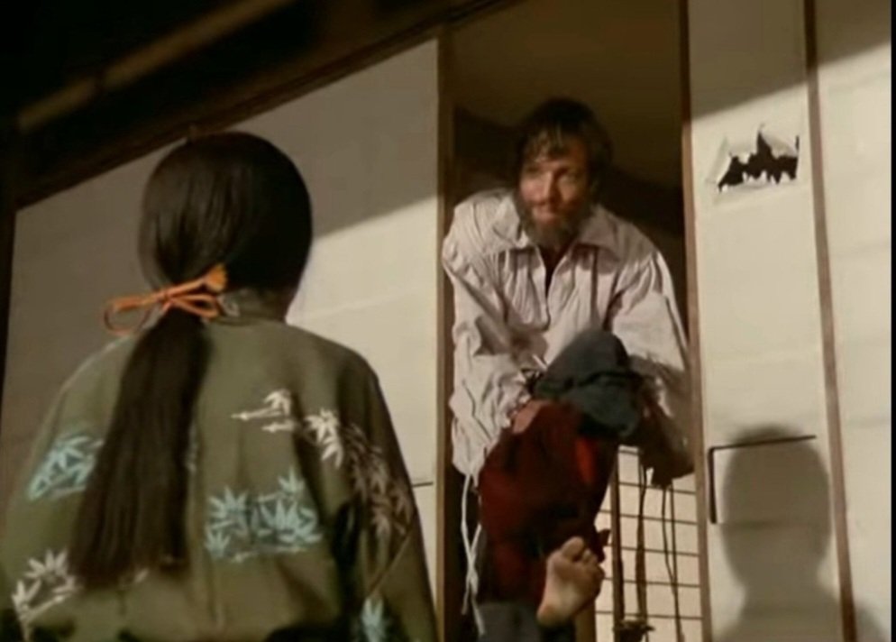 John Blackthorn aka Anjin-san chwilę po wybiciu dziury w ekranie shoji