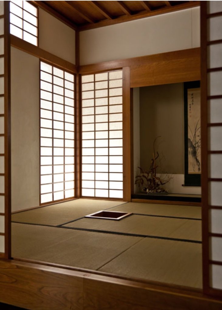 W wystroju japońskich pomieszczeń (washitsu) tradycyjnie dominował kolor beżowy lub jasnobrązowy. Wg japońskich psychologów zdrowia kolory te są bliskie naturze, „życzliwe” ludziom i mają pozytywny wpływ na naszą psychikę – rozładowują napięcie, rozluźniają mięśnia ciała i uspokajają umysł. Niektórzy Japończycy wierzą również, że kolor ich skóry jest zbliżony do tradycyjnych kolorów washitsu, przez co działają one szczególnie pozytywnie na ich zdrowie psychiczne. Charakterystyczne zachowania Japończyków kształtowane były na przestrzeni wieków przez wiele różnych czynników, w tym tradycyjną architekturę i ekrany shōji.
